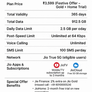 | प्लान मूल्य | ₹3,599 (फेस्टिव ऑफर – Gold + Home Trial) |